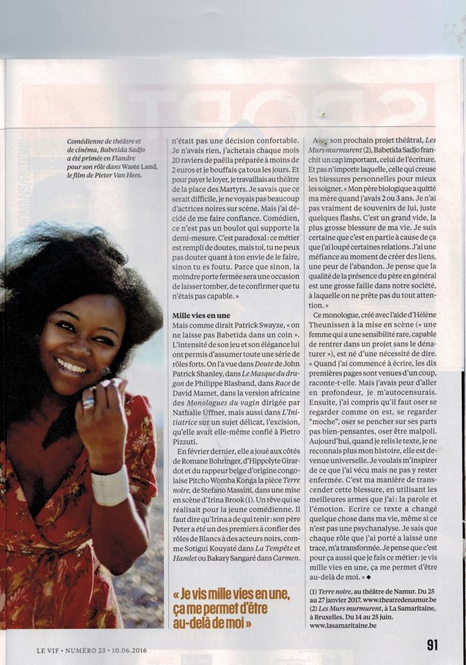 Ce n'est pas un jeu, c'est un feu qui jaillit de Babetida Sadjo, comédienne au tempérament volcanique - Catherine Makereel, Le Soir