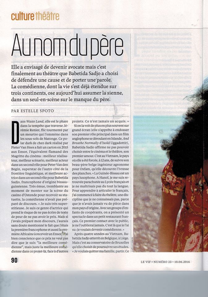 Ce n'est pas un jeu, c'est un feu qui jaillit de Babetida Sadjo, comédienne au tempérament volcanique - Catherine Makereel, Le Soir